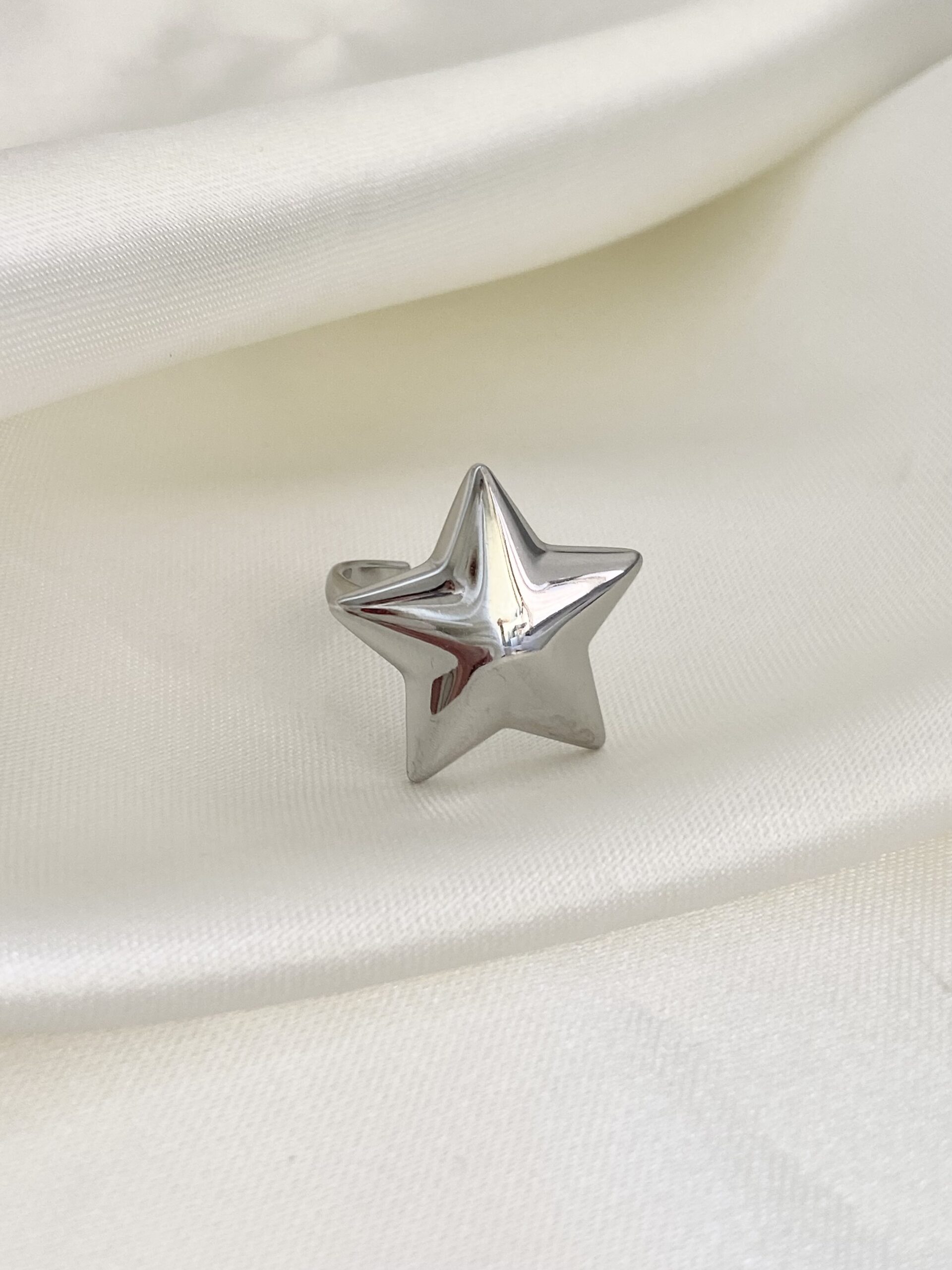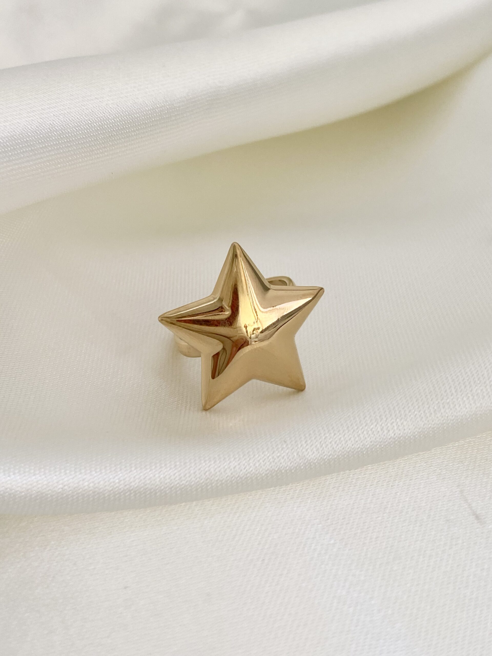 Anello in acciaio, disponibile in colorazione oro o argento, regolabile al dito, 2,3 cm di misura stella