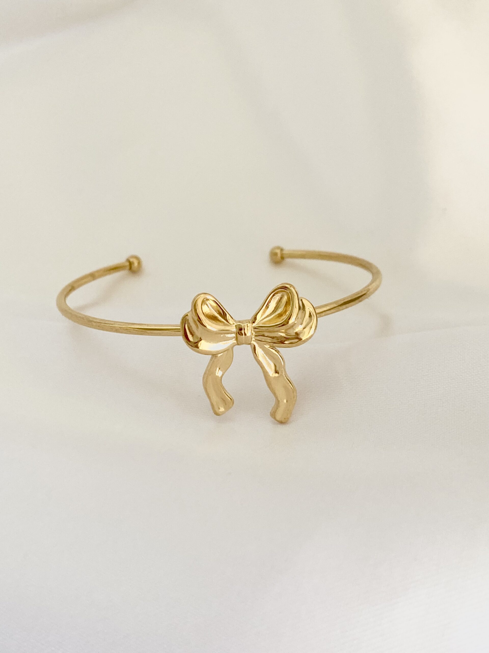 Bracciale rigido con fiocco ( 25 mm h ) in acciaio inossidabile, bagno in oro, 6 cm circa di diametro