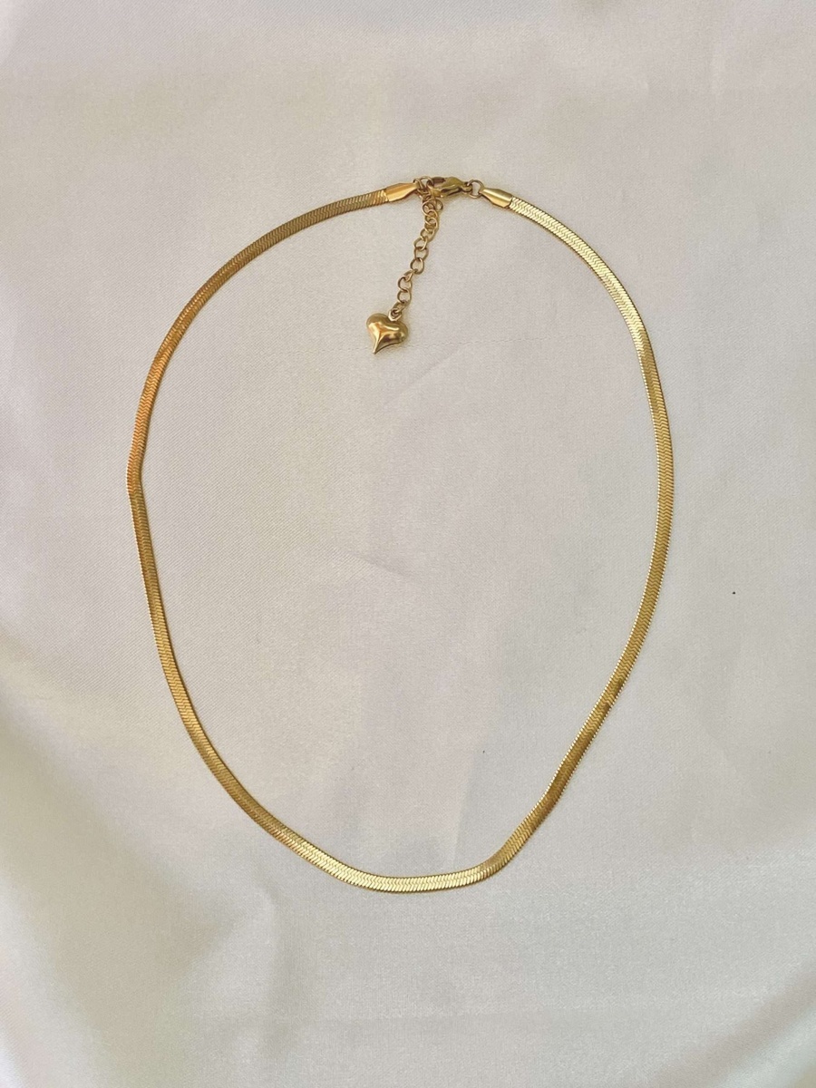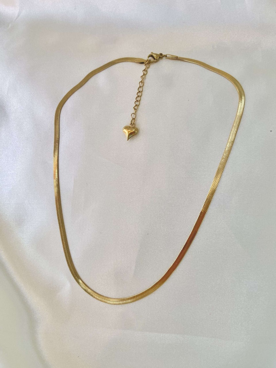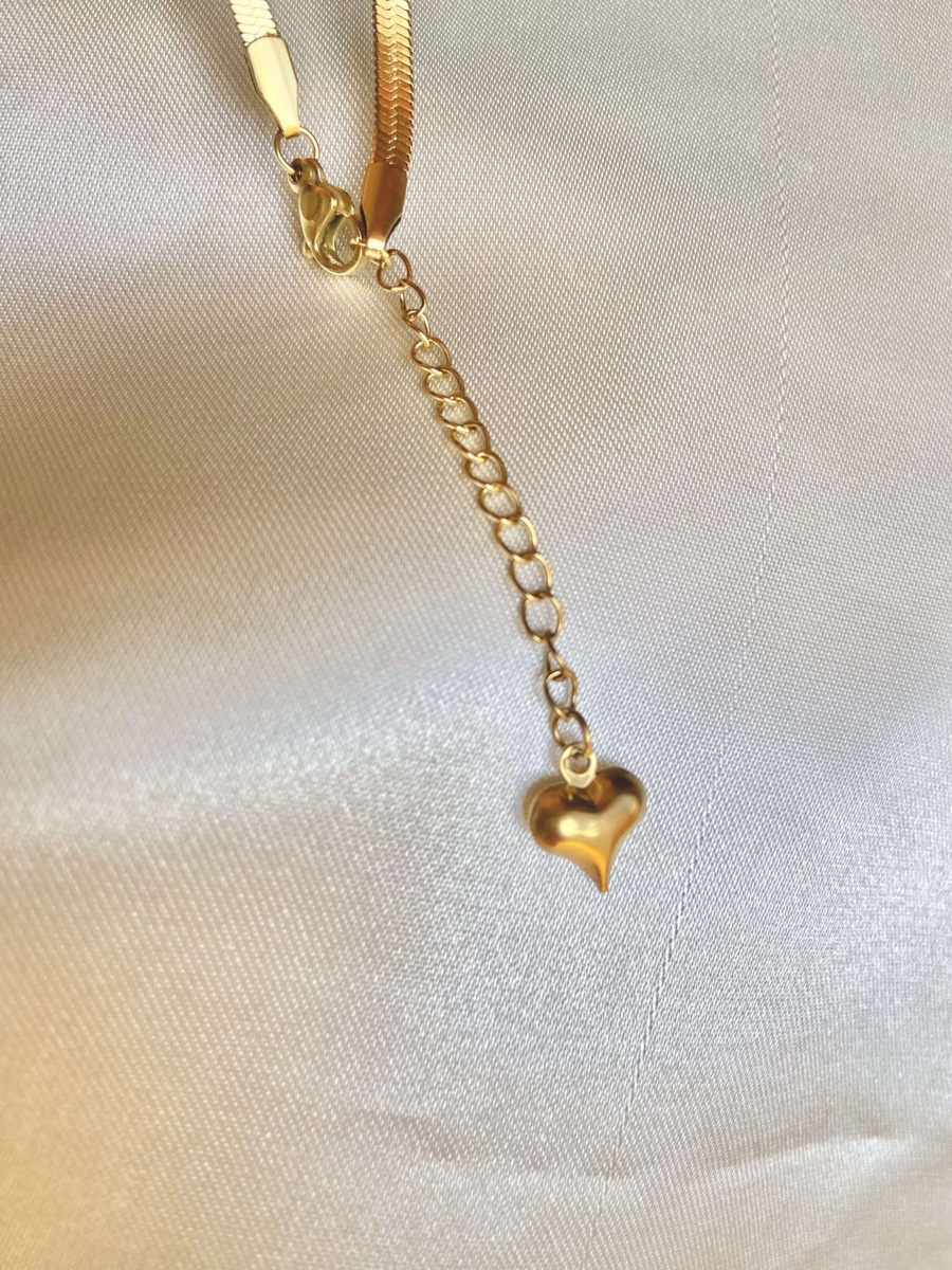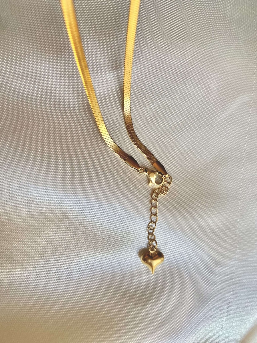 Collana modello Snake, con ciondolo cuore sulla catenella finale, acciaio inossidabile, bagno in oro