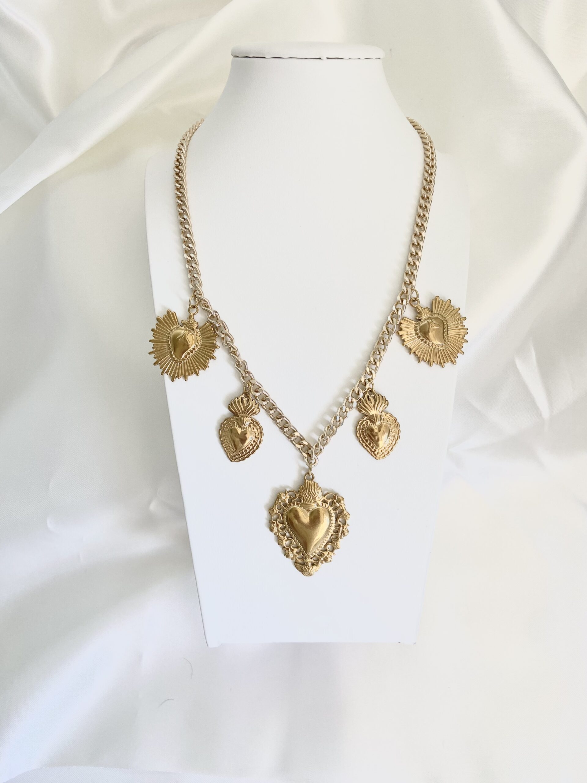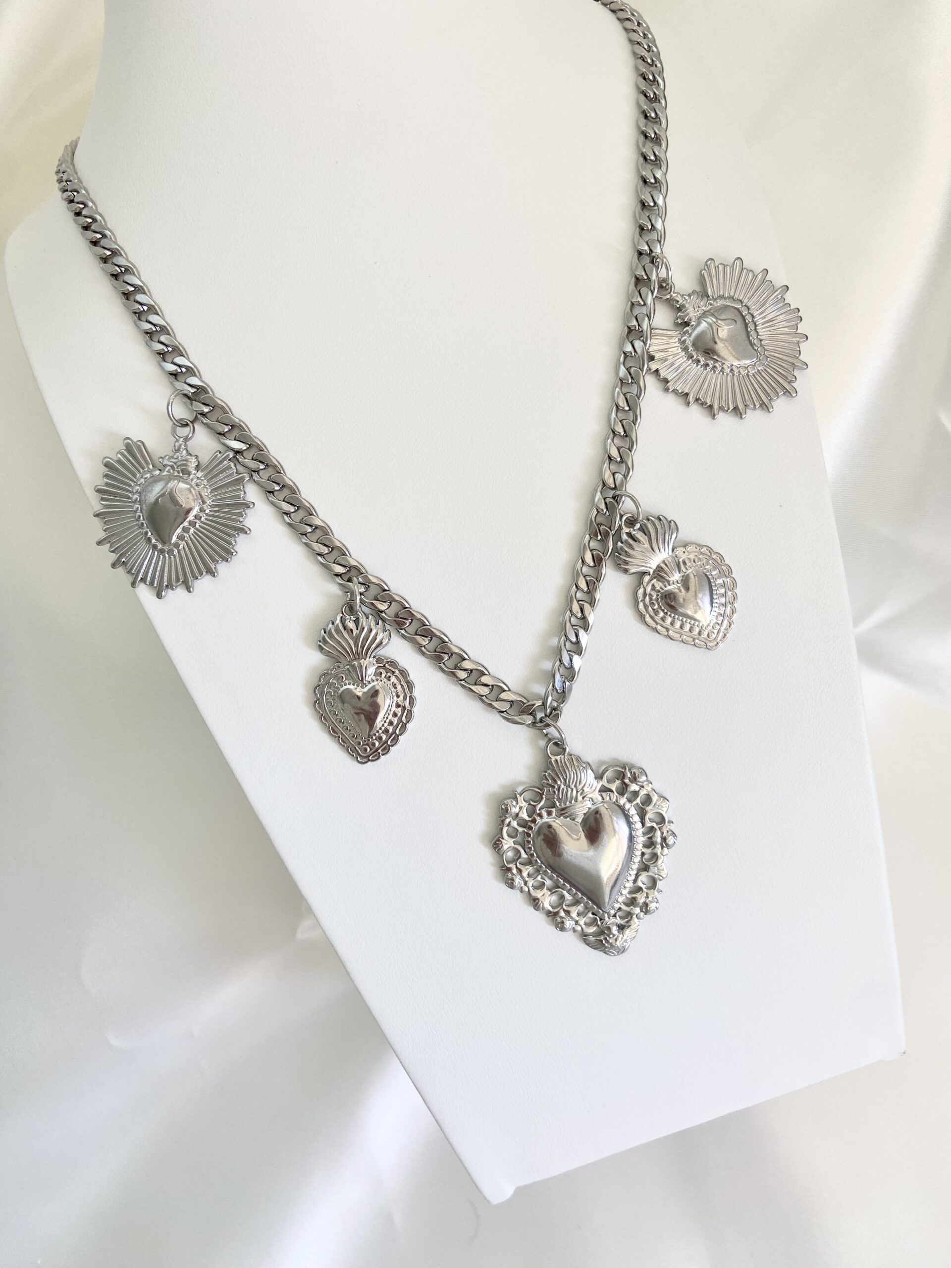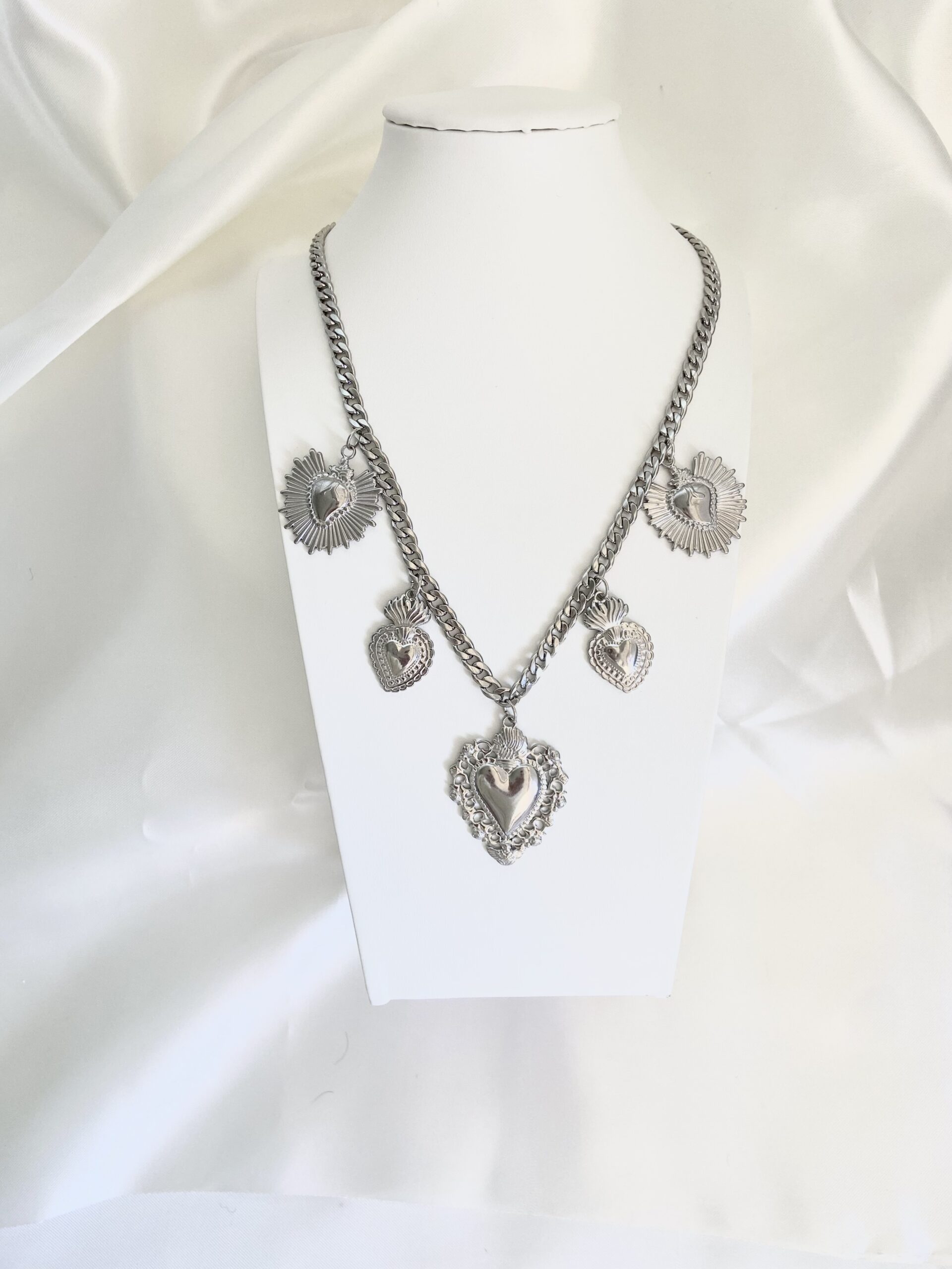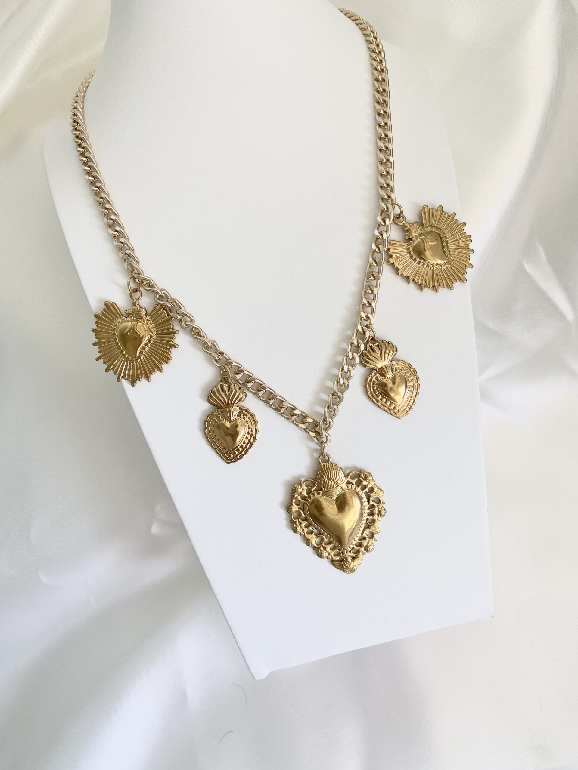 Collana realizzata a mano, catena bagnata in ottone bagnato in oro o argento e ciondoli in acciaio