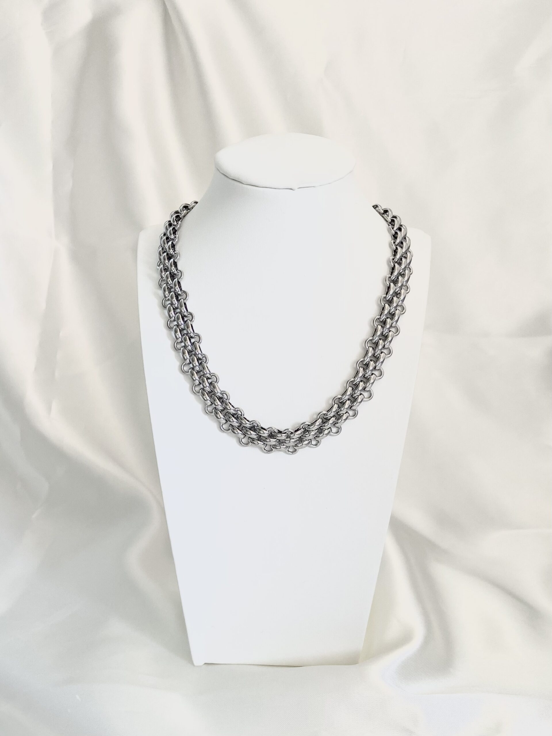 Collana maglia catena intrecciata, larghezza collana 1,5 cm circa, acciaio inossidabile bagnato in argento