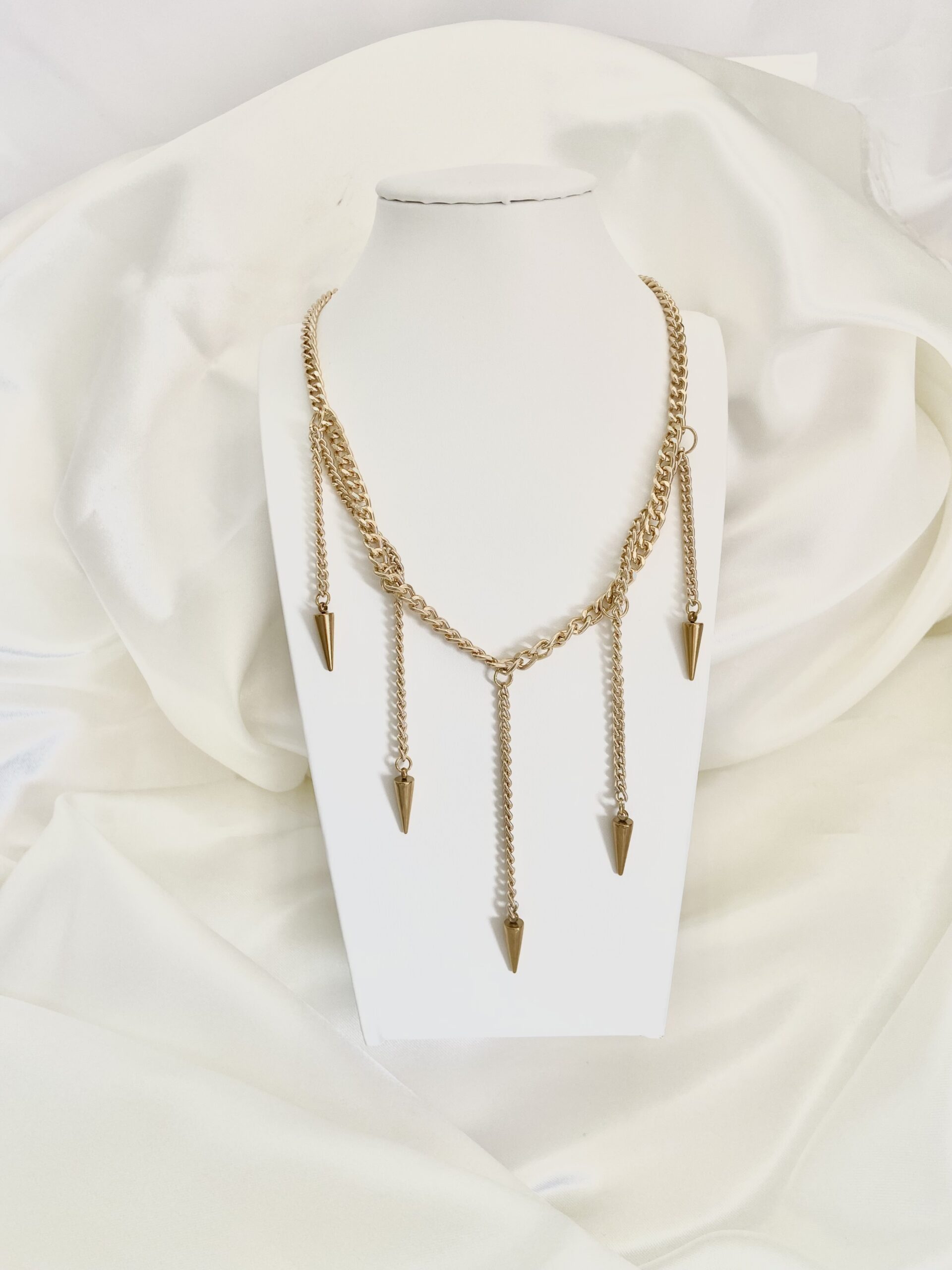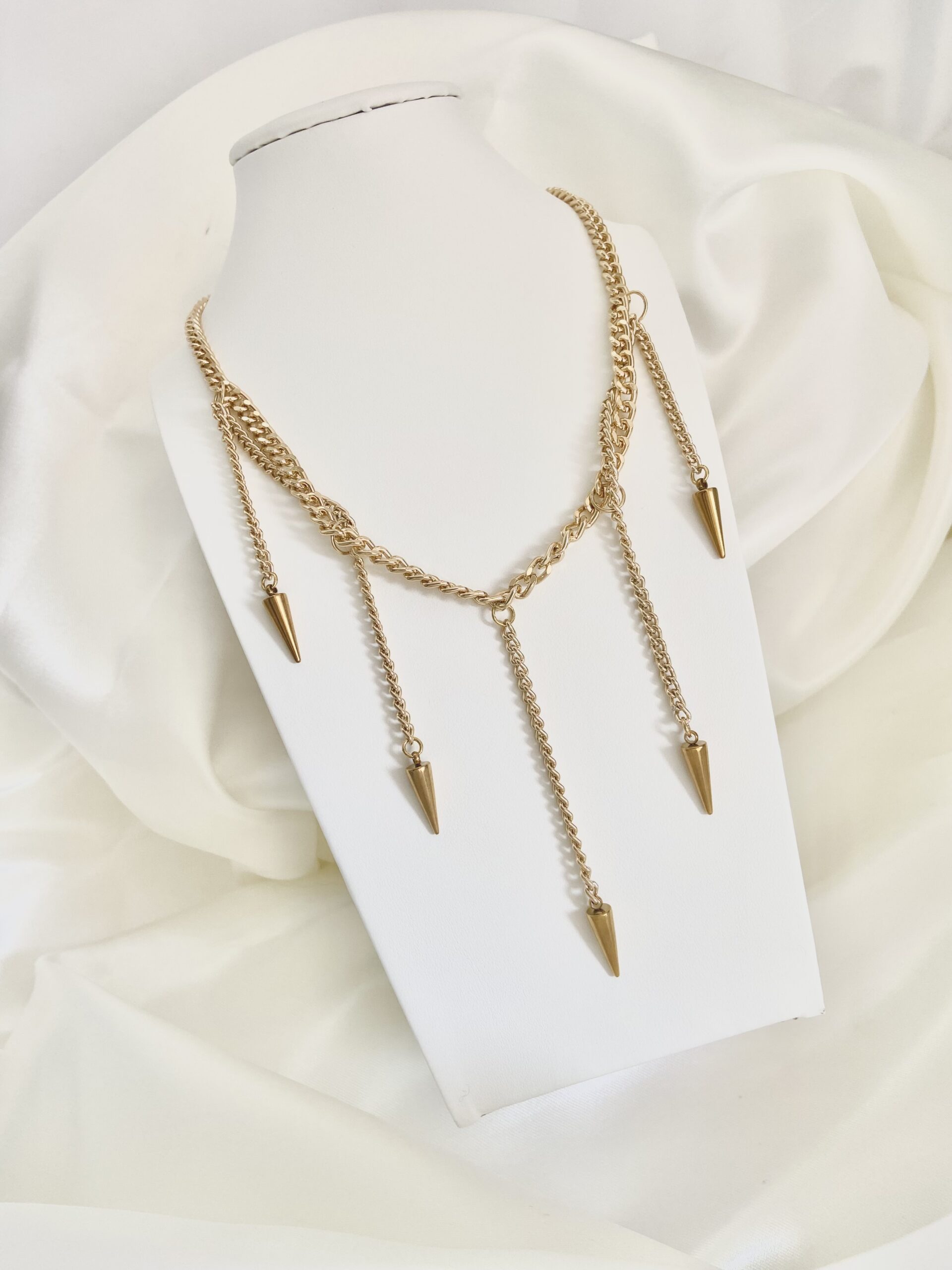 Collana in acciaio inossidabile realizzata a mano, maglia catena, ciondoli, bagno in oro, chiusura con moschettone